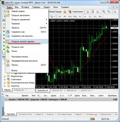 Установка экспертов и индикаторов в новый терминал, порядок создания папок, и рабочая папка терминала